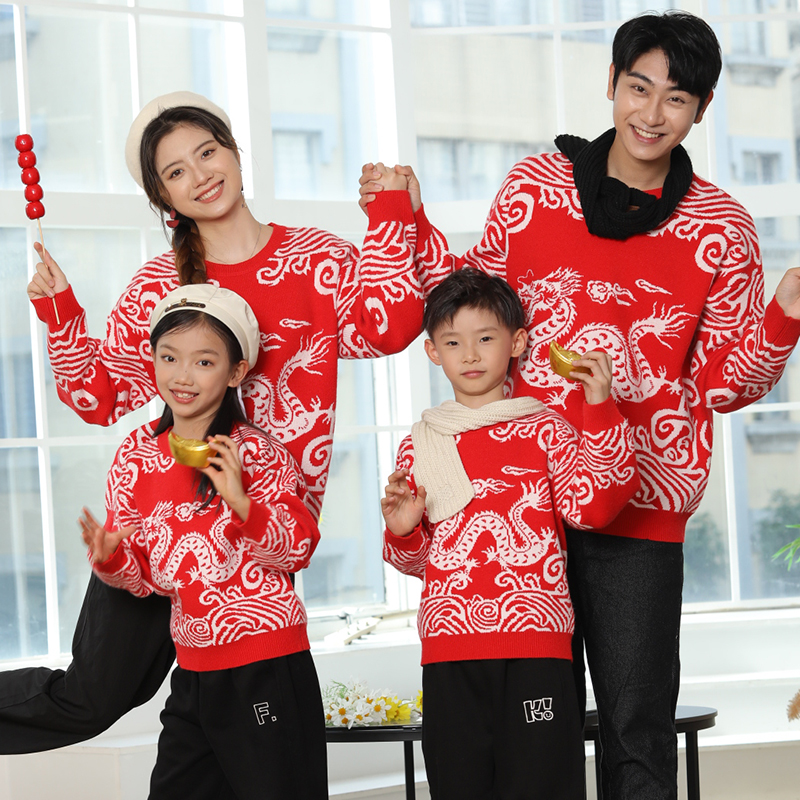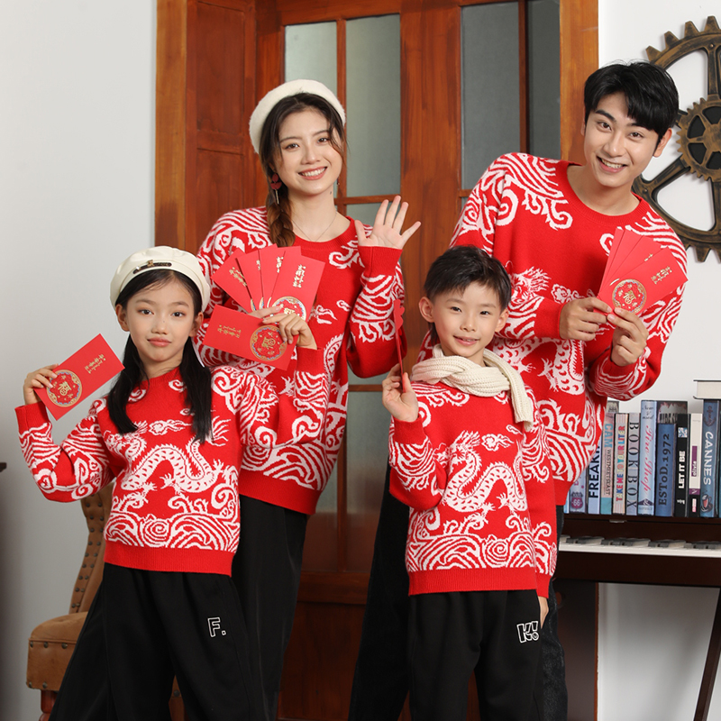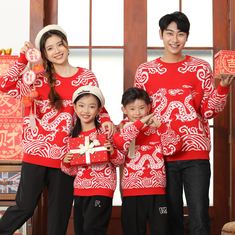 Dragon Year's Year of the Year to suit the children in red Mao coat autumn and winter clothing 2024 Spring Festival is not the same China Wind and son Family clothes-Taobao