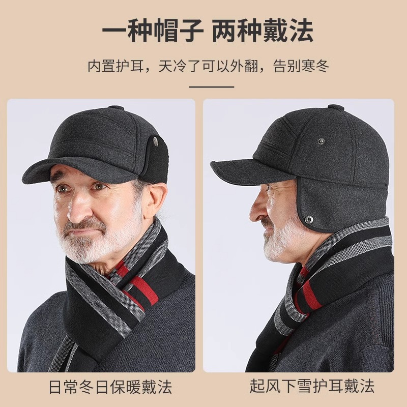 Elderly hat Men's winter Dad Grandpa Grandfather Garnard Duck Tongue Cap Middle Aged Care Ear Warming Baseball Cap-Taobao