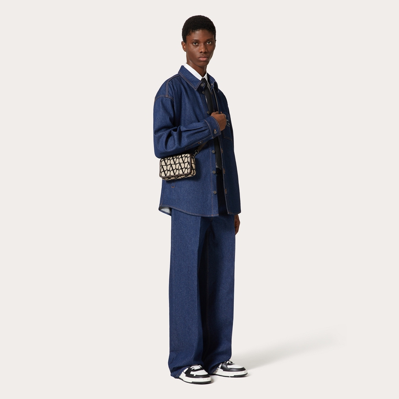 (Online Limited) Valentino VALENTINO men's V logo matching shoulder strap hand holding bag-Taobao
