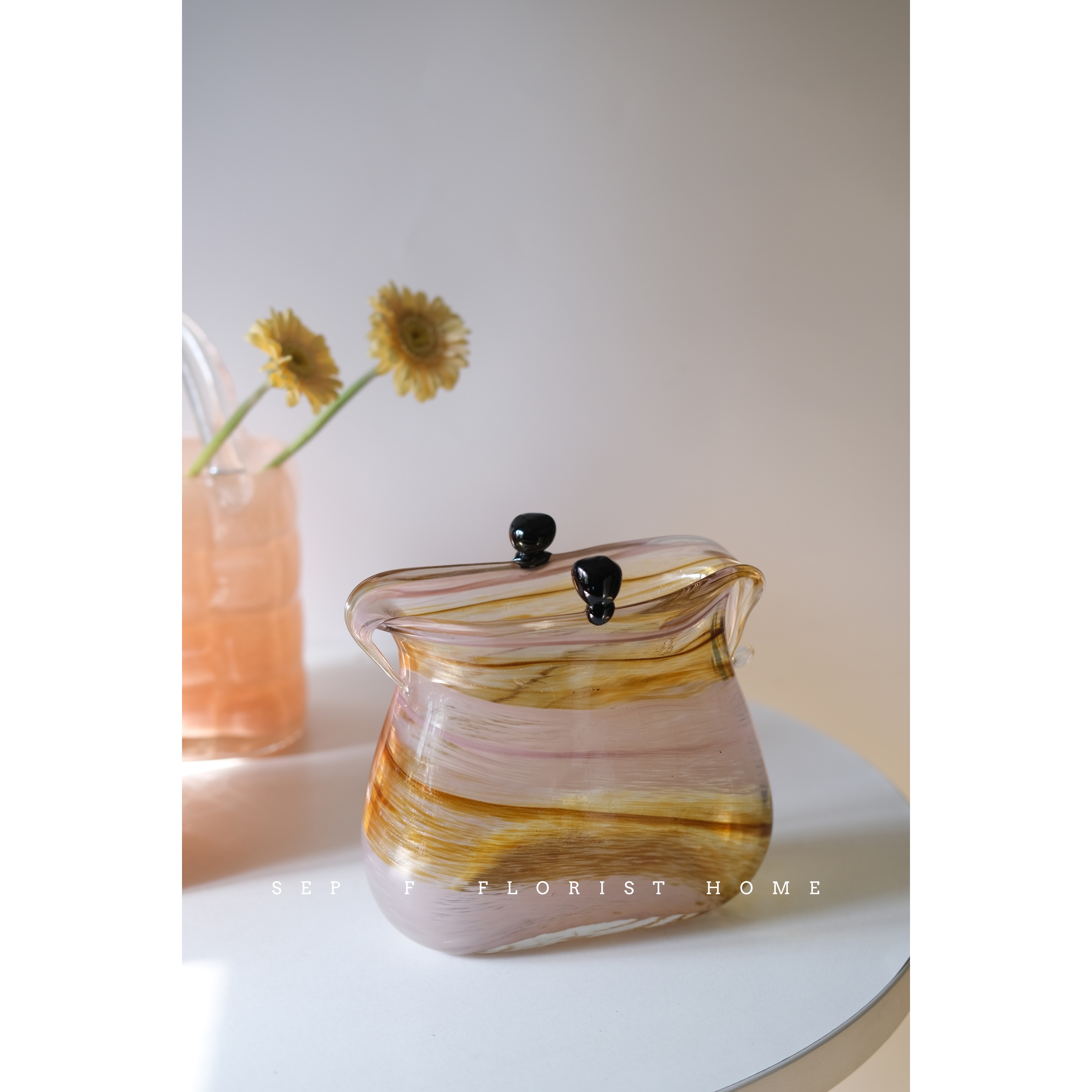 (Medieval) Retro Cobalt Blue Red Pink Artisanal Glass Tabletop Vase Light Lavish Home Swing September Hei Shido-Taobao