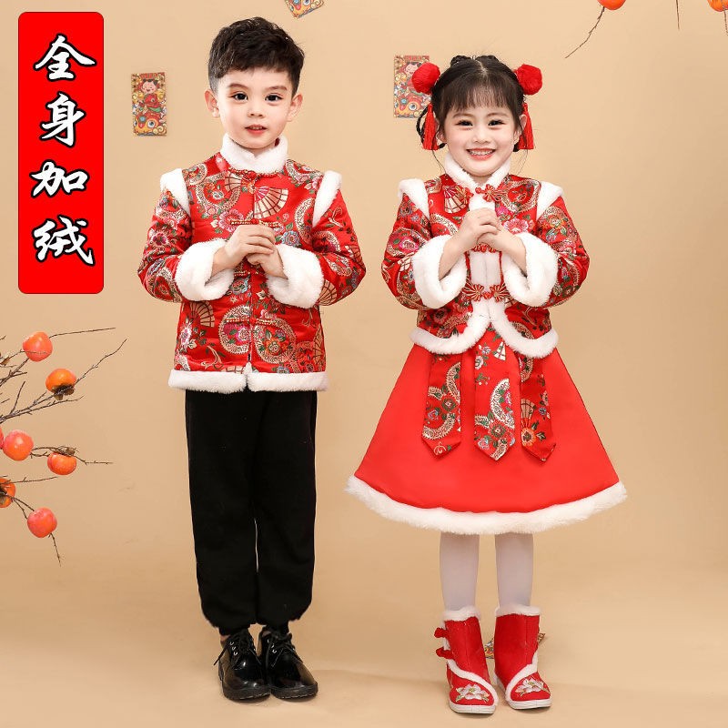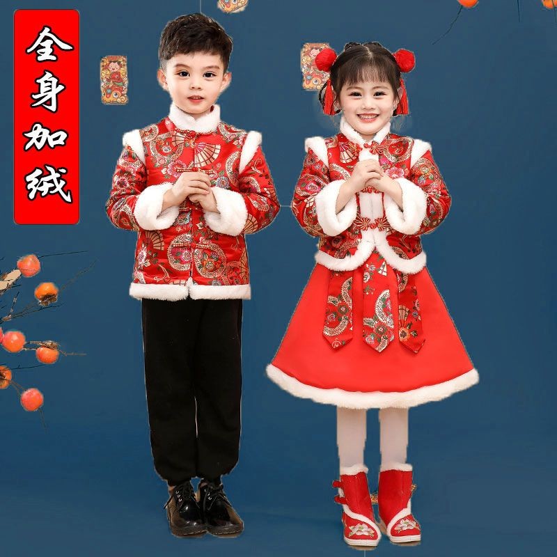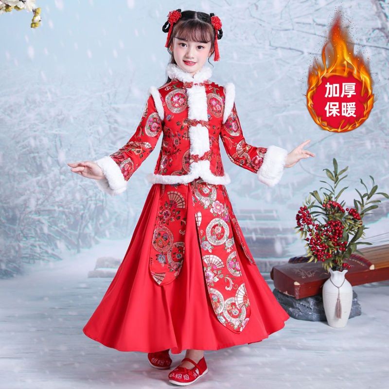 New Year's Day Han clothes girl's winter clothing Chinese style Wind Children's ancient dress girl Baian New Year's New Year's Eve clothes Tangclothing Festive Watch Performance-Taobao