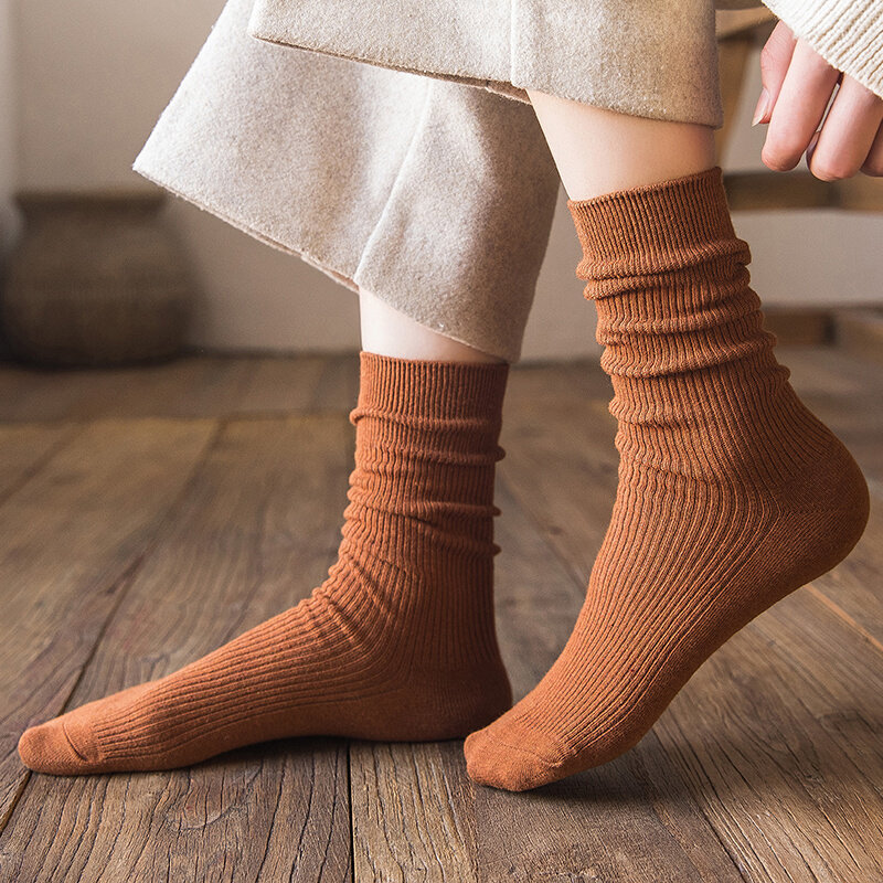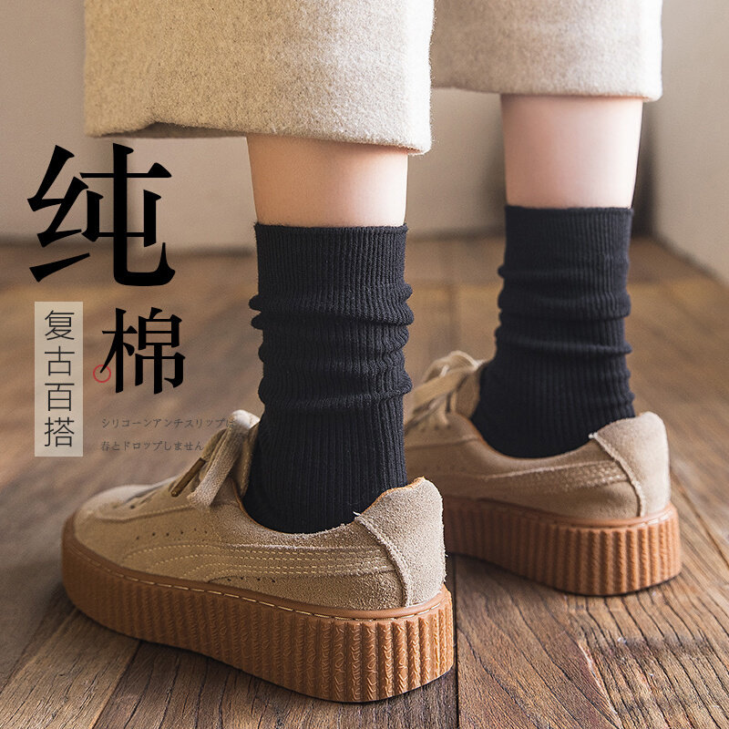 Socks female midbarrel socks Pure cotton thickened Spring and autumn Korea Japan Department Black Long Sox ins Chains Chauffins Total Cotton Pile Socks-Taobao
