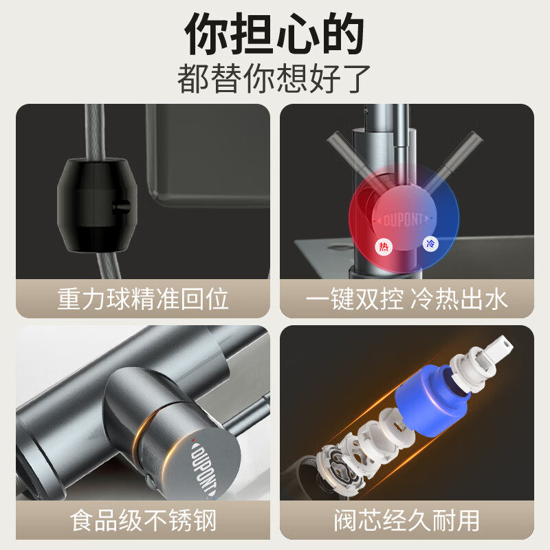 Dupont 352 Kitchen Taps Hot and cold water washing basin Dishwashing Basin Sink Pull-out Splash-Proof Domestic Stainless Steel-Taobao