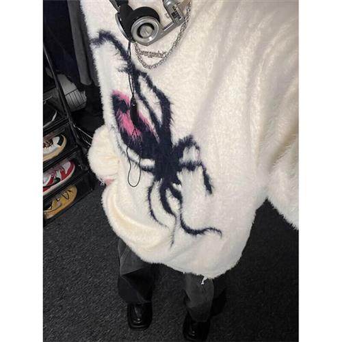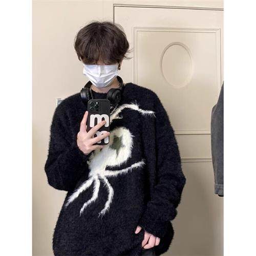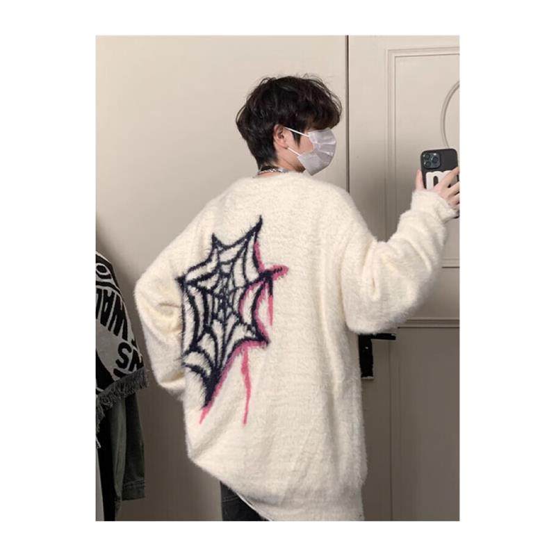 Black Box White Sweater Men's Autumn Winter New Stitch Sweatshirt Loose Casual Spider jacquard Lazy Wind Superior sleeve-Taobao