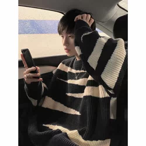 Giant Nana Sweater Men's Autumn Winter Port Wind Retro Streak Line Clothes Teenagers Loose Laziness and Lazy Craze Clothing-Taobao