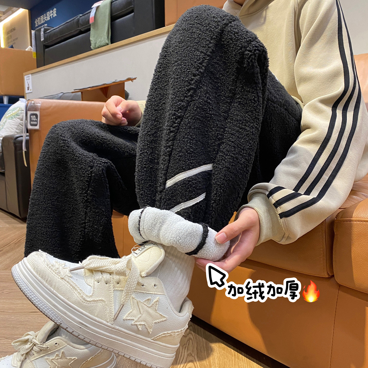 Lamb Suede Warm Cotton Pants Men Winter Day Ensemble Retro Bunches Sports Acrobats Pants 100 Hitch Straight Cylinder Big Yard Pants-Taobao