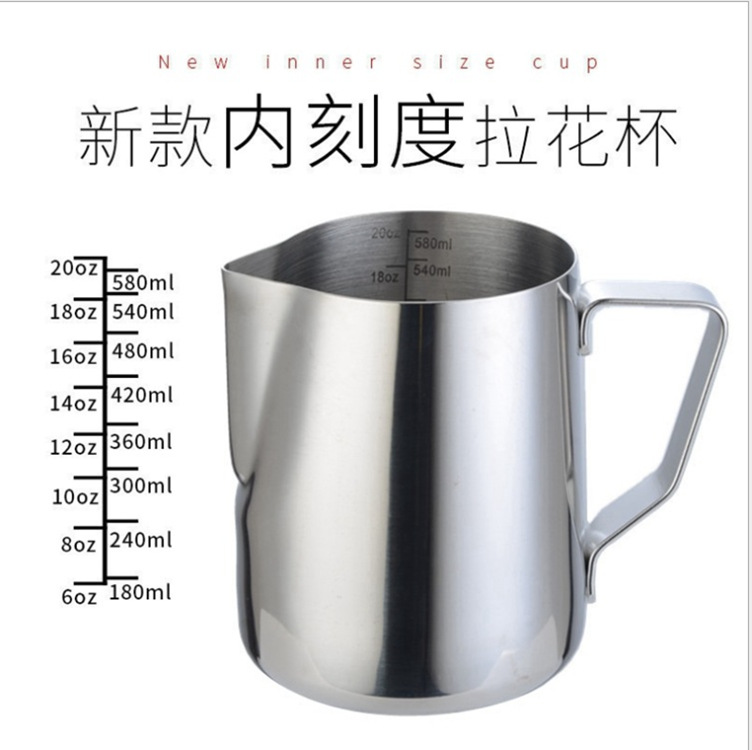 Factory straight for 304 stainless steel lakflower cup inner scale stainless steel pointed mouth Laflop cup 1 0MM thickened milk café-Taobao