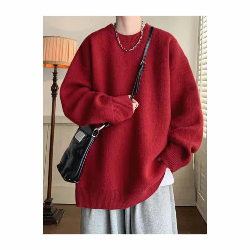 NEW OR MODE Wine Red Tide sweater Male Winter Lazy Wind Advanced Sensation Outside Wearing Inside Hitch Weaselwear Man-Taobao