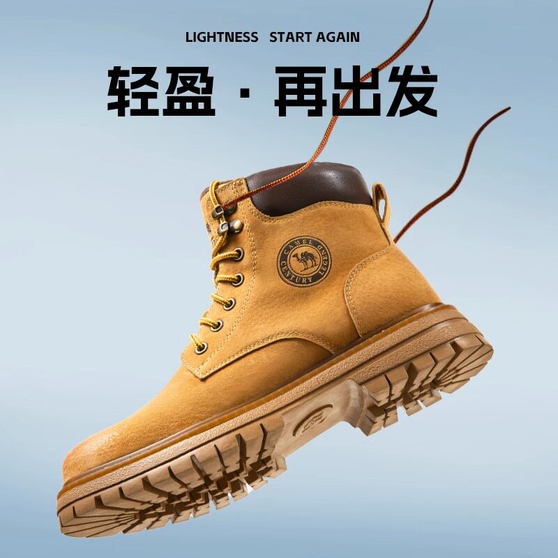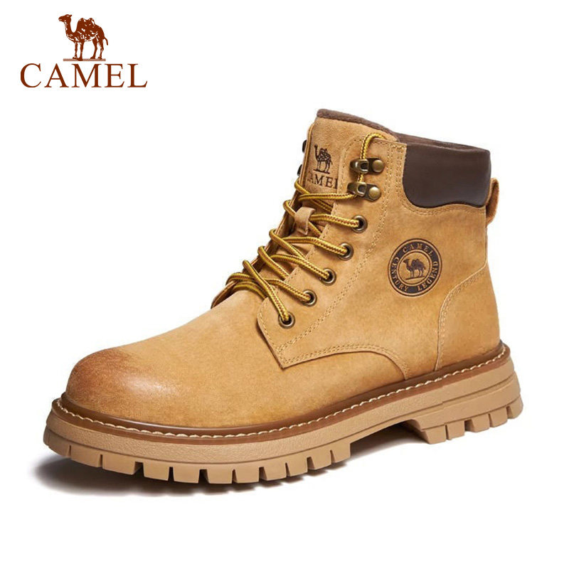 Camel Outdoor Martin boots Men's shoes Autumn winter new high Help Rhubarb Boots Woman Plus Suede Yingren Retro Climbing Tooling Boots-Taobao