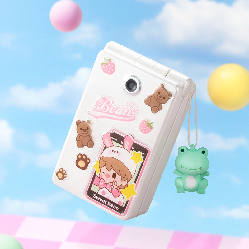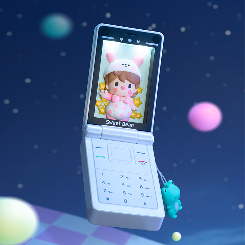 POPMART bubble Mater small sweet bean pearl white flip phone Handmade with cute gift trend toy-Taobao