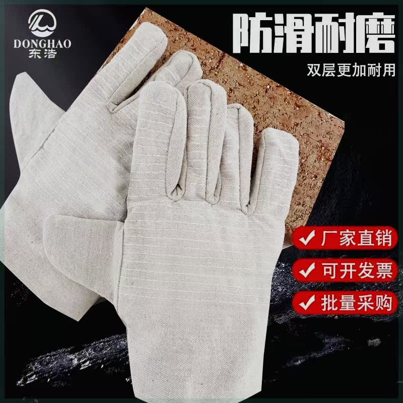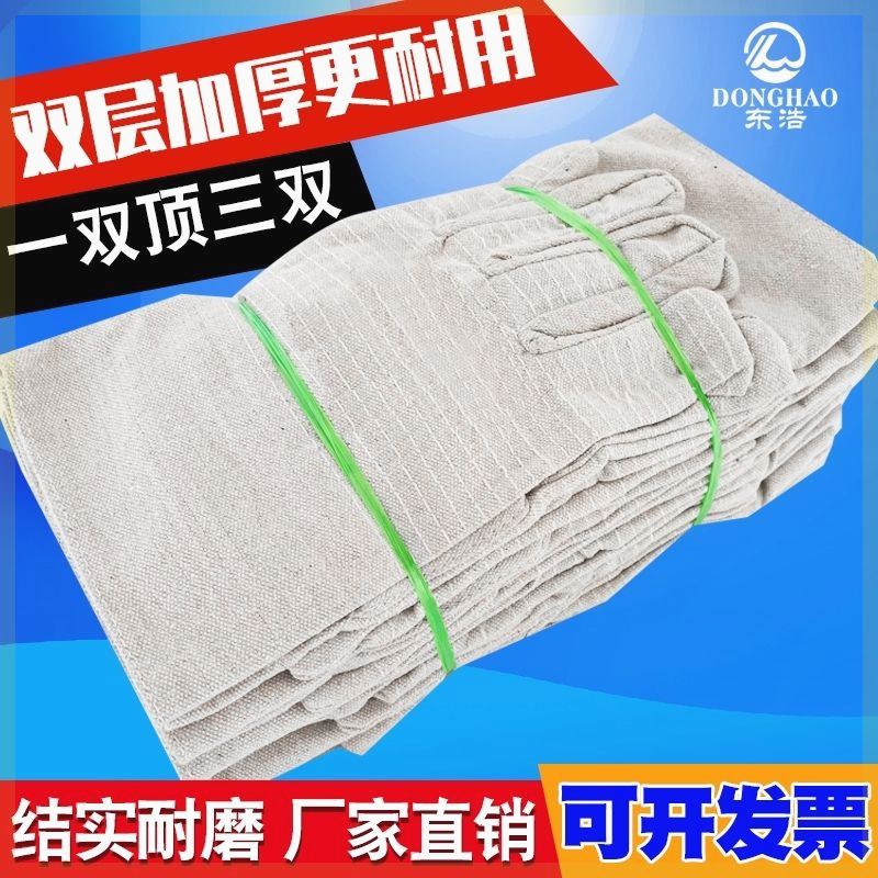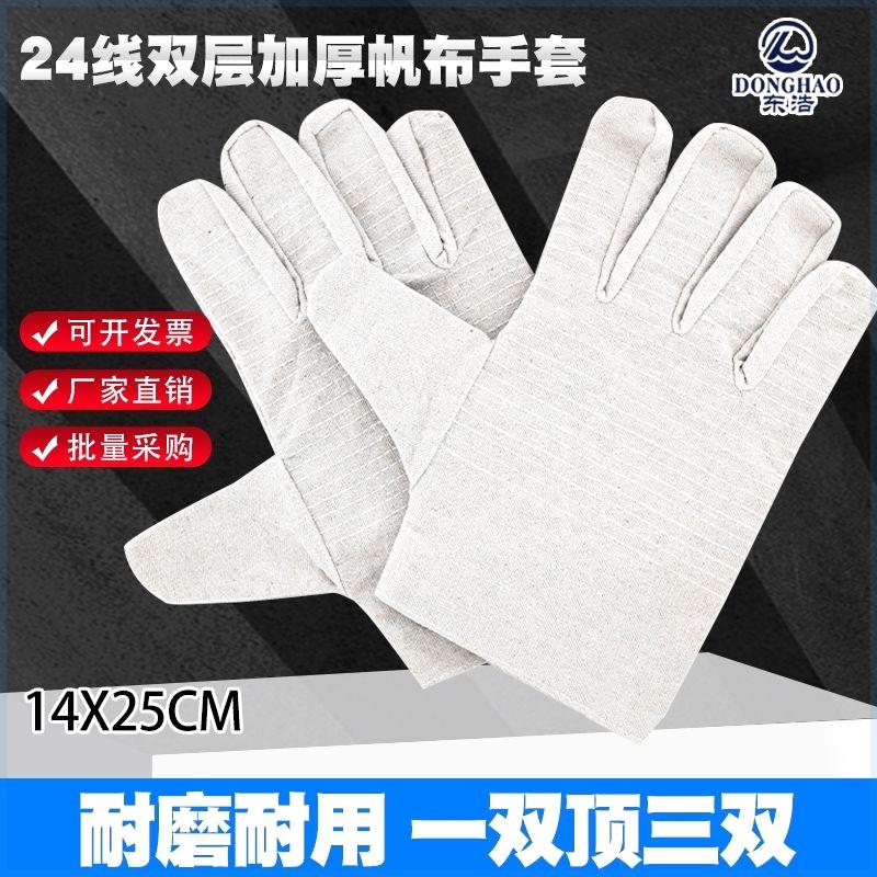 Double-layer canvas 24 lines full-lined labor-protection gloves durable and durable construction site electrowelt mechanical labor protection gloves-Taobao