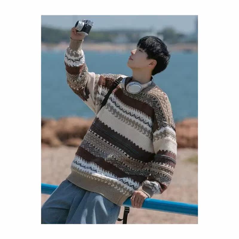 Diga Da National Wind Sweater Men's Fall New Striped lovers Costume Round Collar headsets Undershirt Loose Needles-Taobao