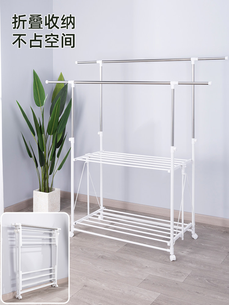 Friend Litt Landing Clothes Hanger Free of folding Indoor telescopic hanging hanger Mobile Outdoor Balcony Rack Sunning-Taobao