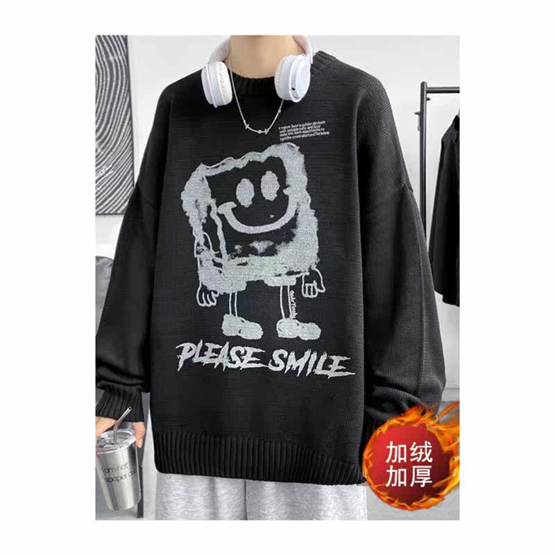 Foss Phil sweater men's autumn winter new gush sponge baby printed erodes with undershirt loose-Taobao