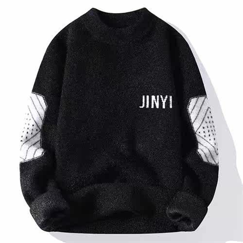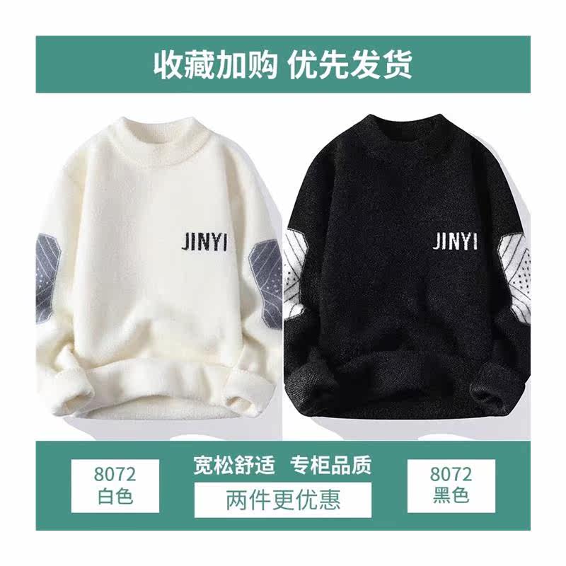 During Korean Wind Years Sweater Men's Autumn Winter Ferrets Half High Collars Bottom Stitch Jersey Men's Korean Version Trend Plus Suede Thickening-Taobao