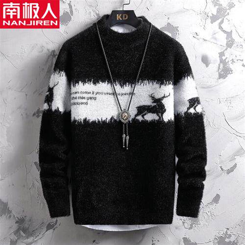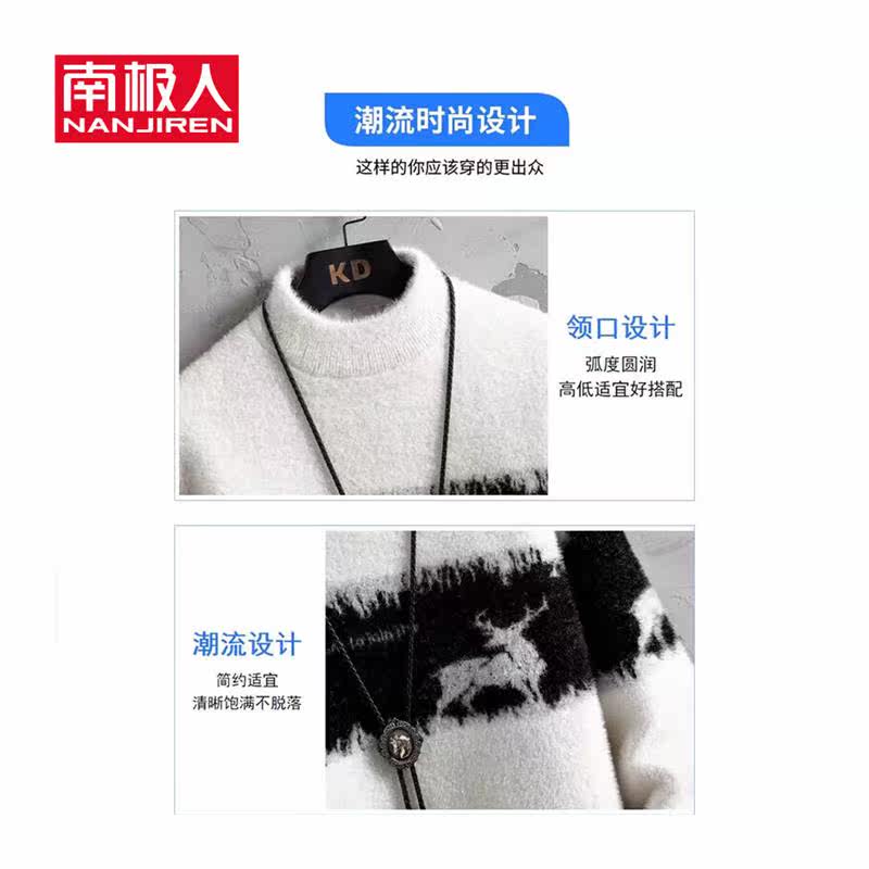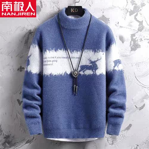 South Pole imitation ferret fur coat men's clothing autumn and winter style garnter thickened and semi-high collar bottom-knitted sweatshirt Po-Taobao