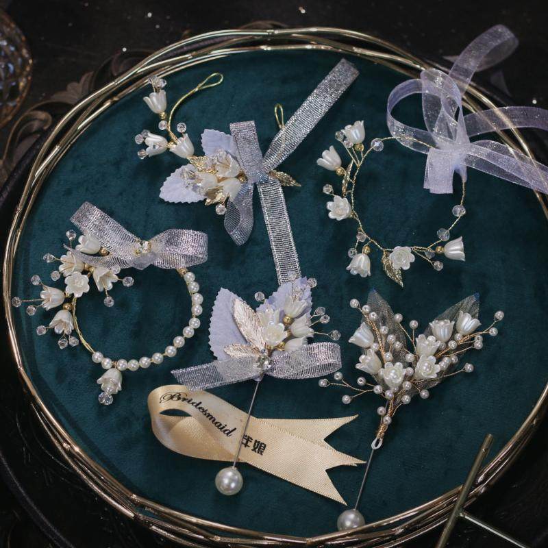 New Korean bells orchid bridal bridal hand ring bridesmaid small frescoed wrist flower groom with brooch brooch-Taobao