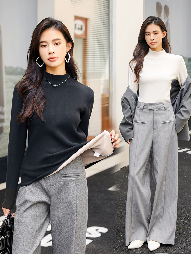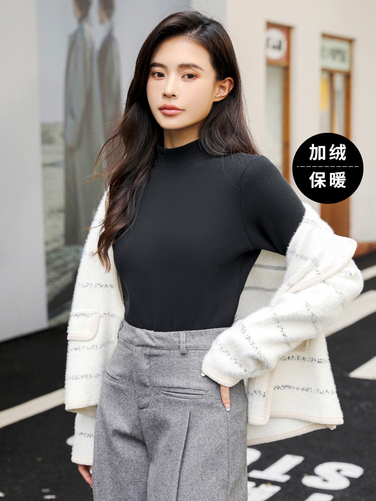 Add-down beating undershirt female integrated suede winter foreign air inner lap thickened heat warm long sleeve round collar upper garment factory-Taobao