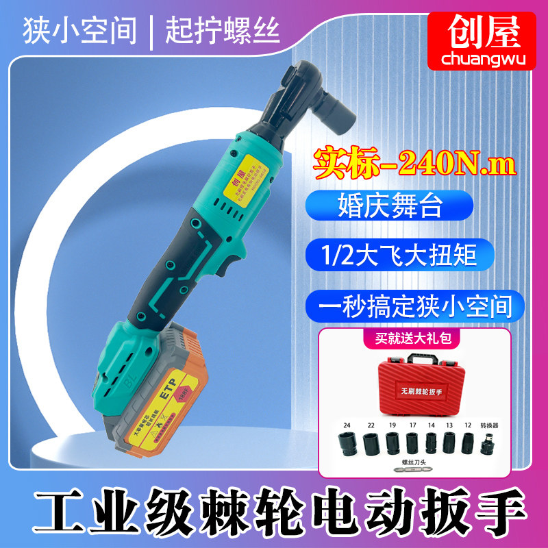 Factory Pin Genesis Electric ratchet wrench 12 Great flying brushless lithium electric charging Right angle angle towards 90-degree truss Great Twist-Taobao