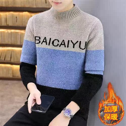 Winter Imitation Mink Fur Coat Men Warm Thickening Semi-High Collar Bottom Sweatshirt Teen Men's Knitwear 138 Ink-Taobao