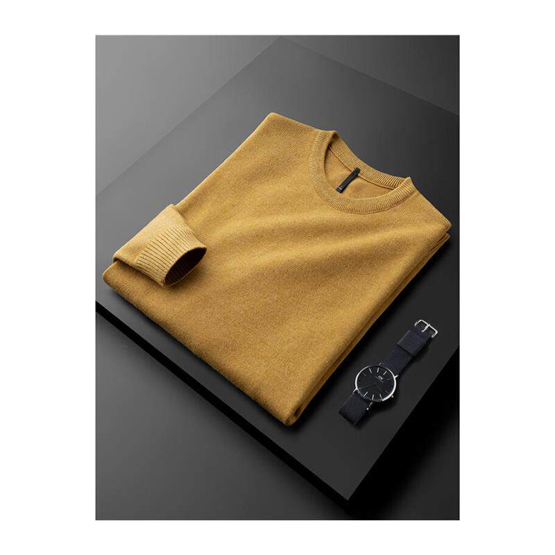 PRIDEME Winter thick Warm Round Collar Pure white sweater men's long sleeves Dressing Up to the Bottom-Taobao