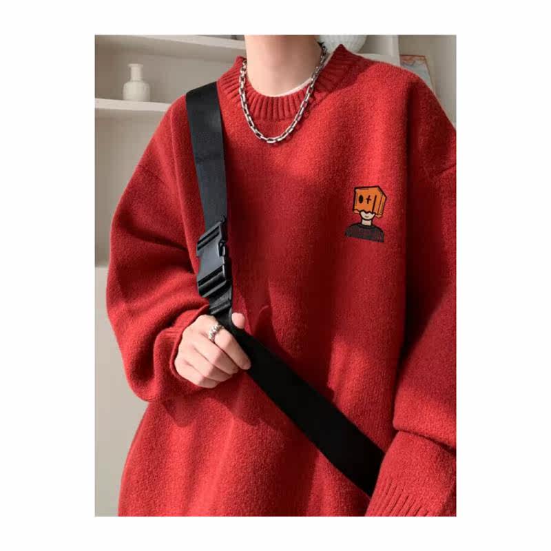 OEMG sweater for men's autumn and winter ochre high level senssense head day department retro-lazy wind loose casual knit cardigan-Taobao