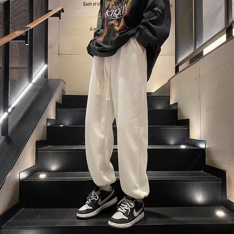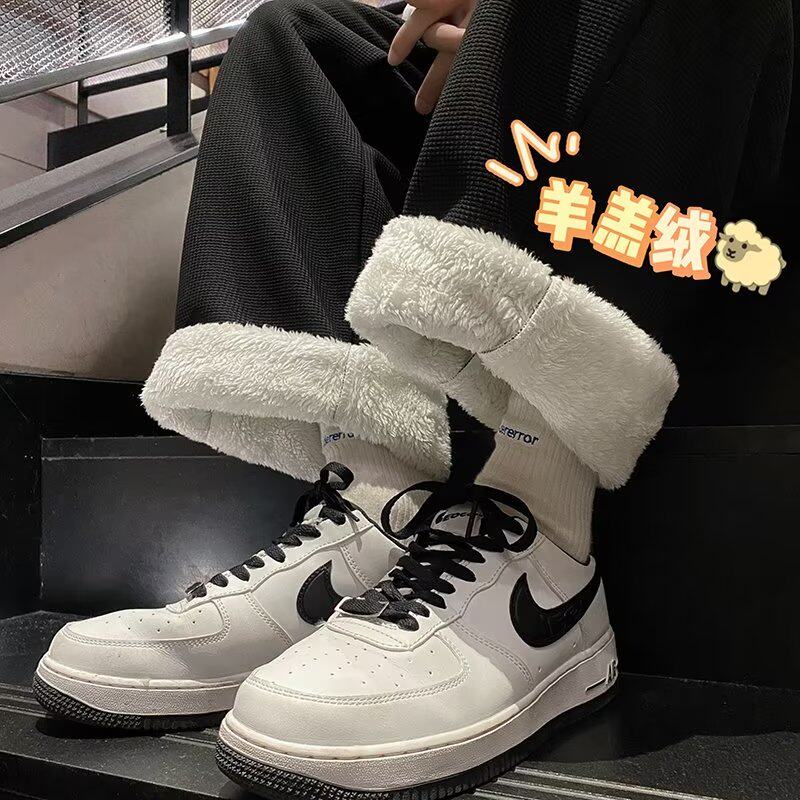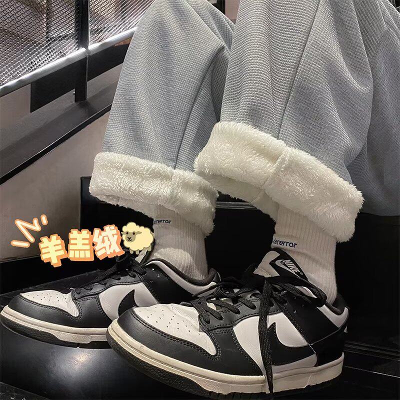 White lamb suede cotton pants male winter cleanfit pure color anti-chill pants cashmere loose straight drum casual pants-Taobao