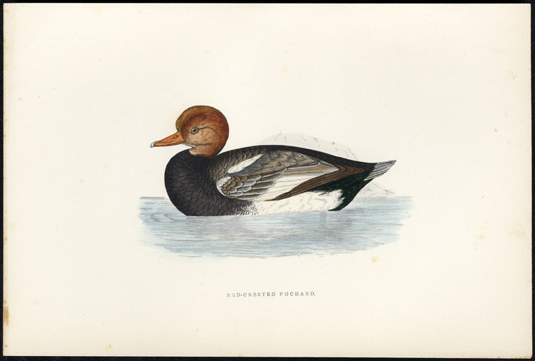 UK 1864 Antiques handmade in colour wood lettering prints Bothings data British birds Red Mouth Diving Ducks-Taobao