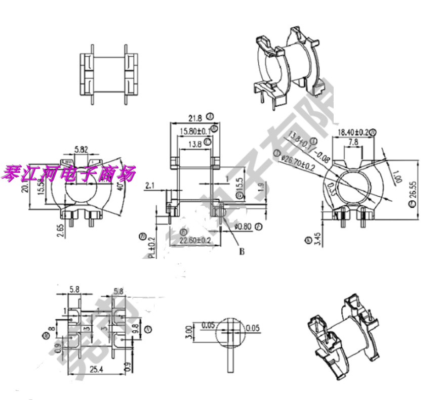 PQ3225 magnetic core skeleton horizontal 2 2 pin electric wood skeleton high-frequency transformer magnetic core skeleton-Taobao