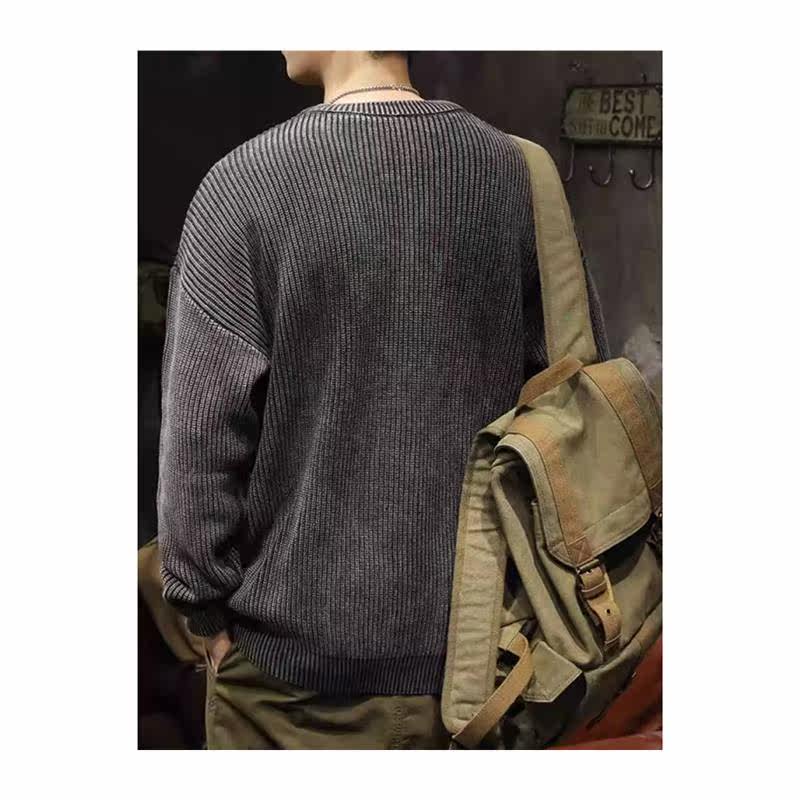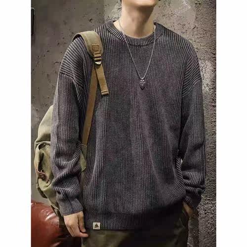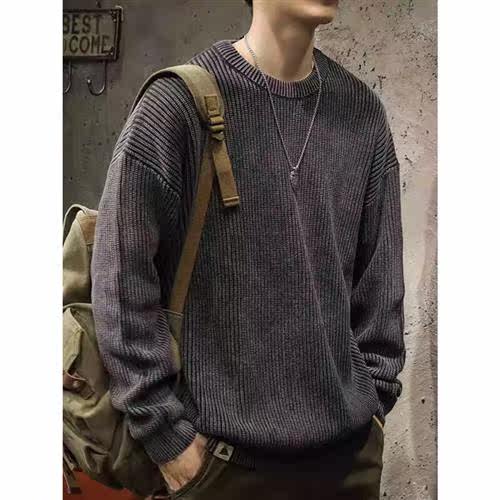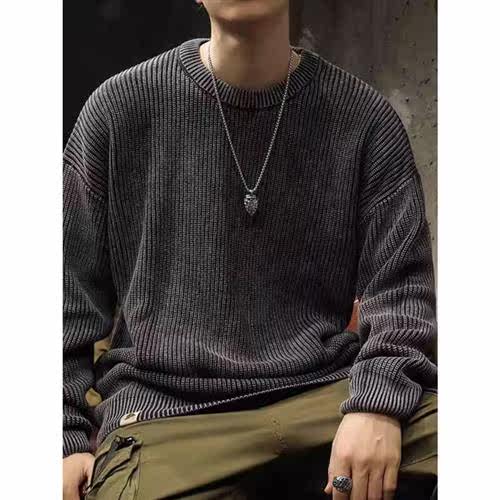 Boomers sweater male loose winter Heavy work washed retro 8 coarse needlework wool jersey men's knitwear big code beat-Taobao