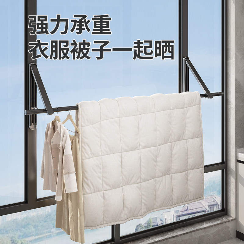 Invisible folding clothes hanger balcony wall-mounted indoor free of punching and clothesline floating windows hanging clothes rods for drying deities-Taobao