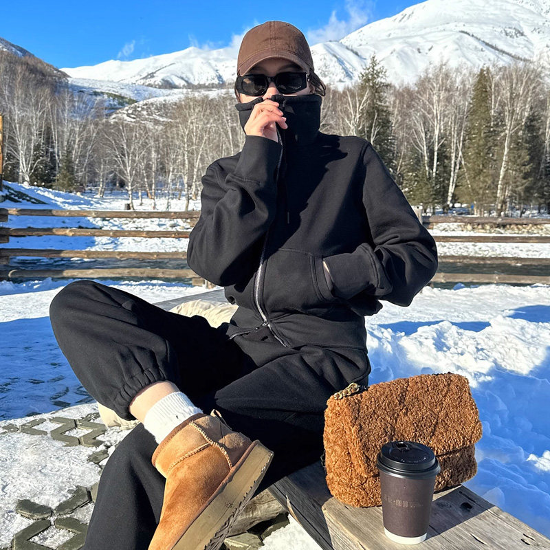 Rsemnia Plus Suede Thickened Casual Sports Suit Women Winter New Fashion Acrosse Sweatpants Foreign Air Two Sets-Taobao