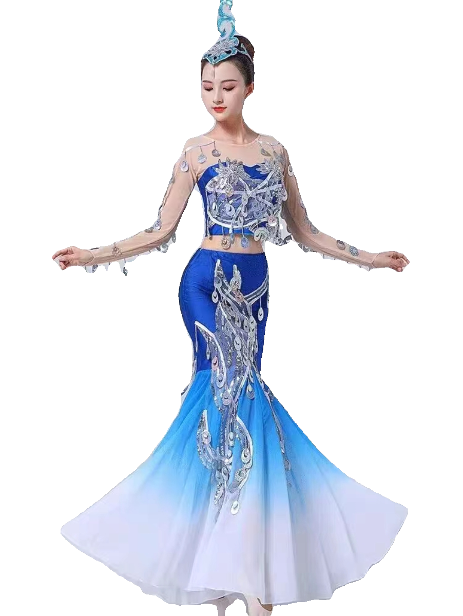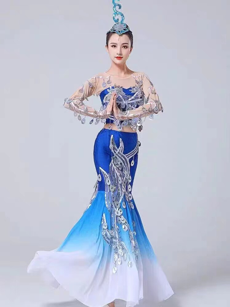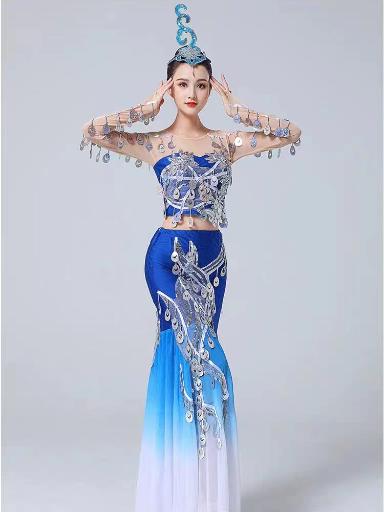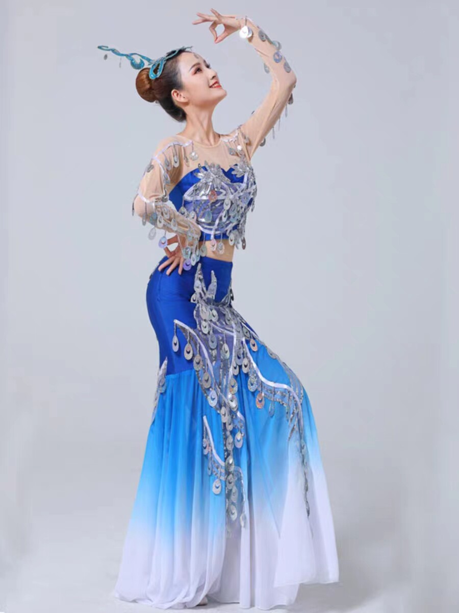 New Dai ethnic dance performance The Spirit of the water is served with peacock dance female adult bright sheet fish tail long skirt-Taobao
