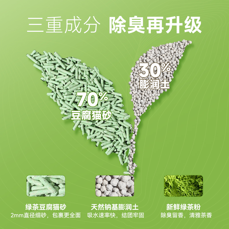 Fumaru Green Tea Taste Bentonite Tofu Mixed Cat Sand 2 5kg * 4 bags deodorant knot Cat Sand Washable Toilet-Taobao