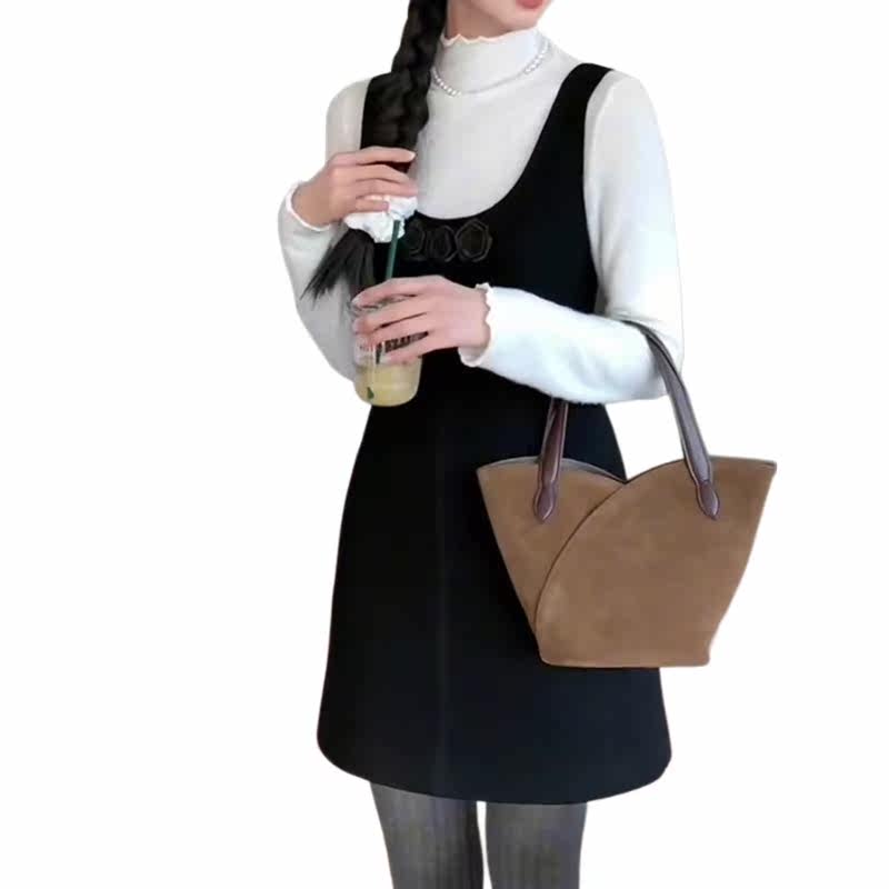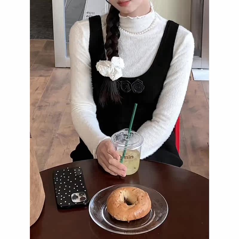 Small fragrant wind vest one-piece dress two-piece suit Deep winter dress with tea ensemble wearing a whole set of this year's pop pretty-Taobao