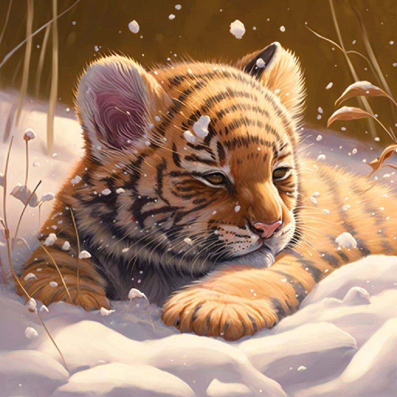 Small Tiger Digital Oil Painting Diy Fill Color Decompression Healing Hand Filled Color Propylene Painting Living Room Bedroom Decorative Painting-Taobao