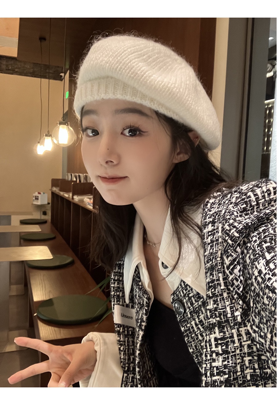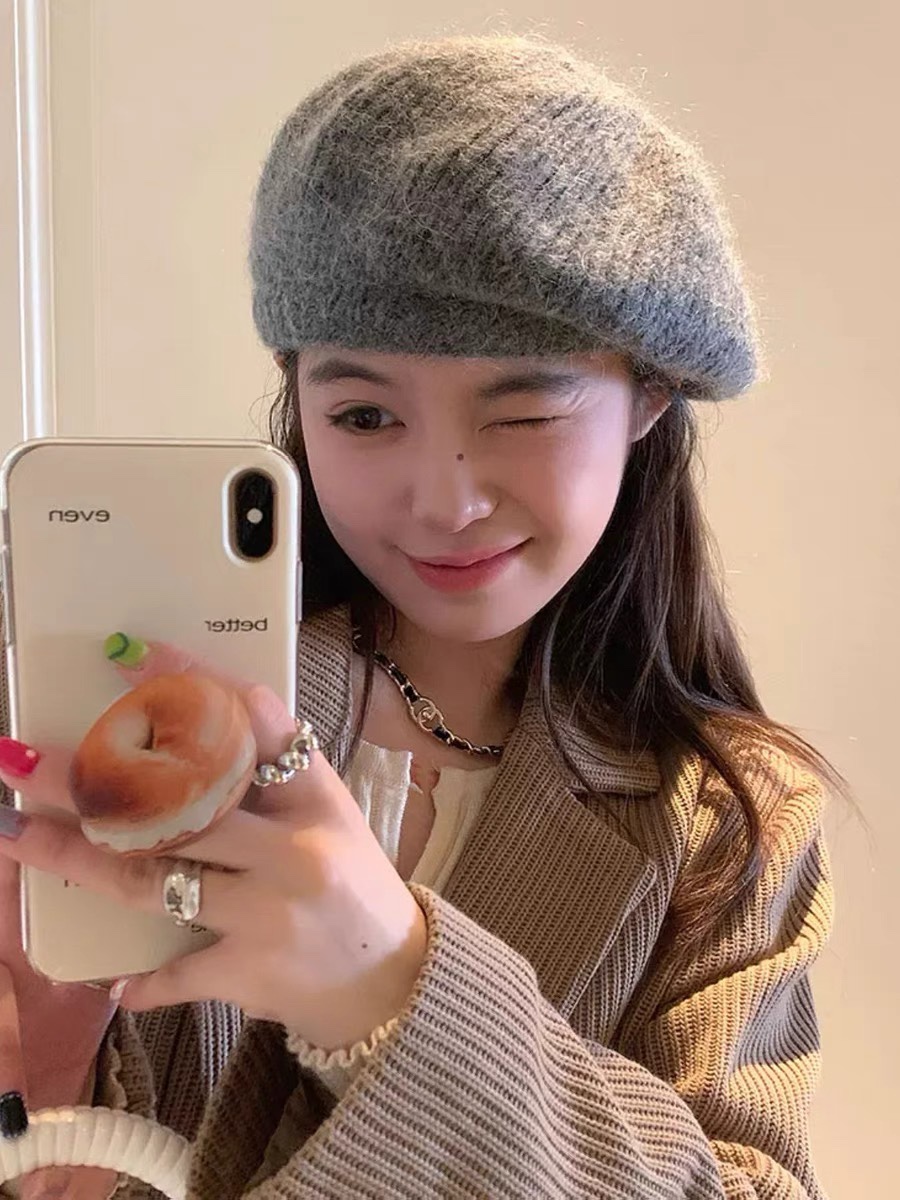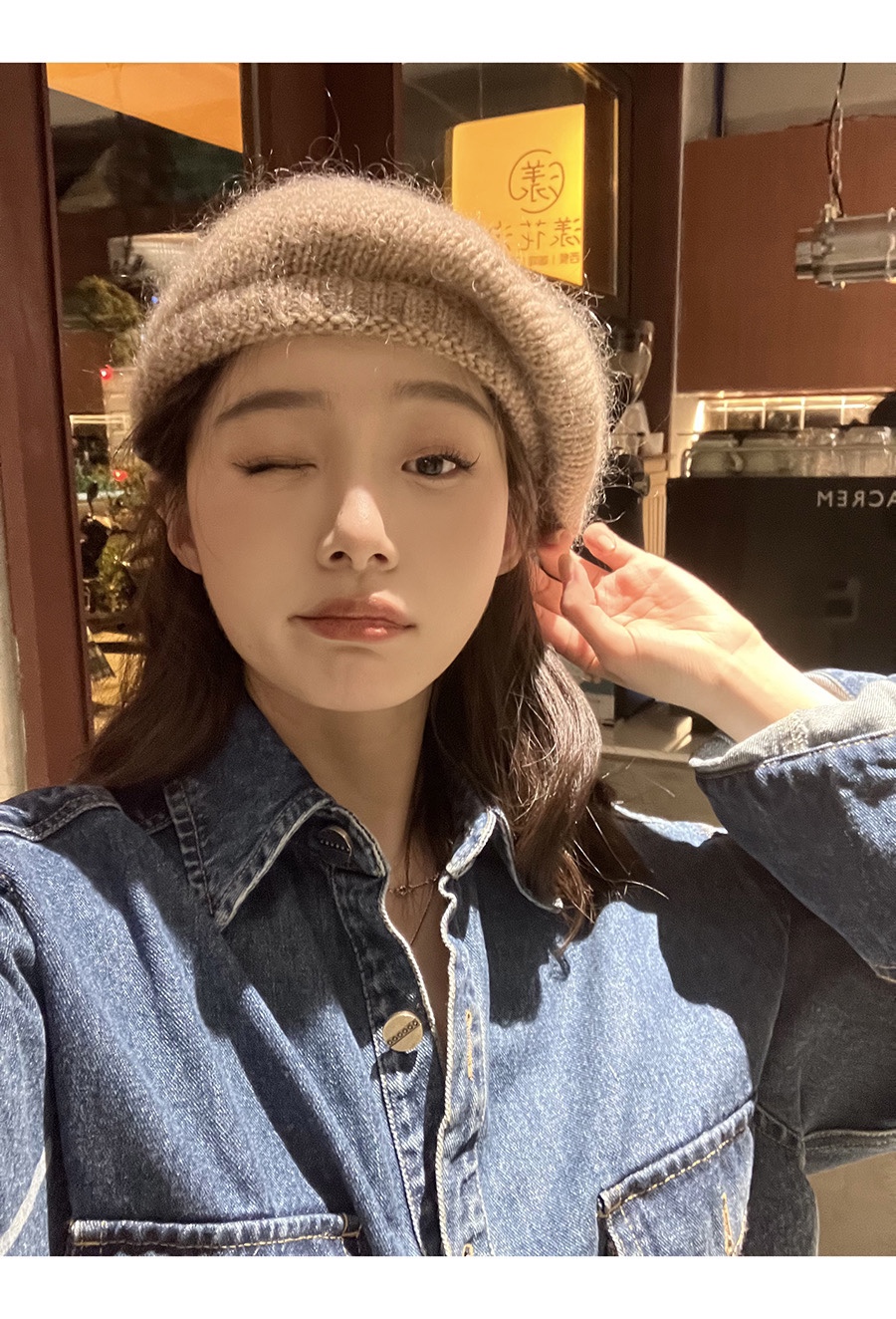 @ Six color cap type 8 wrong ~ Mahai fur knit beret hat woman 100 hitch a painter hat with a small hair line hat-Taobao