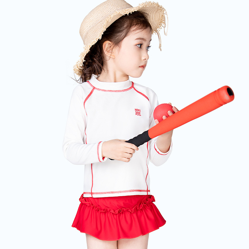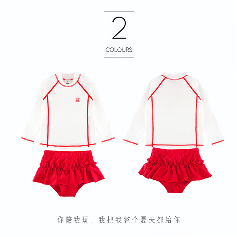 2021 New Children Swimsuit Girl Skirt Type Split Long Sleeve Sunscreen Quick Dry Swimsuit Students Learn Swimming Suit