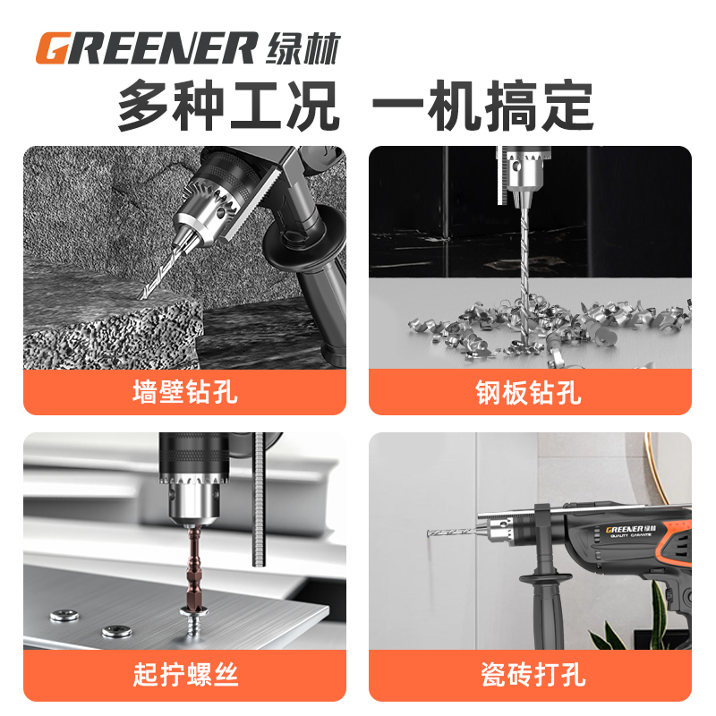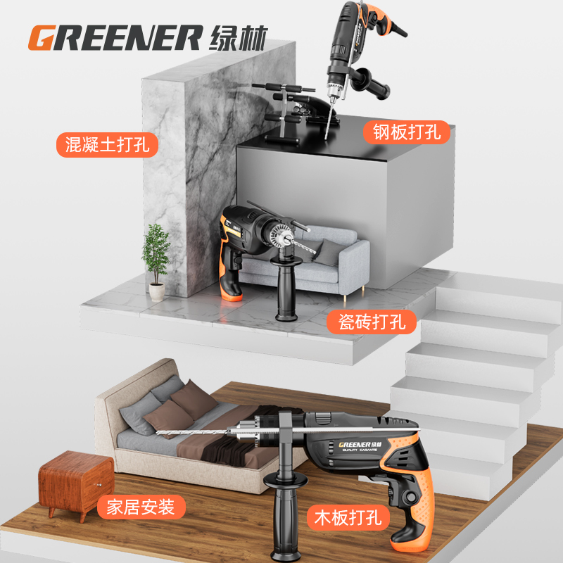 Green Forest Impact Drill Multifunction High Power Home Small Electric Hammer Hand Electric Drill Electric Transfer Drill Wall Punching Power Tool-Taobao