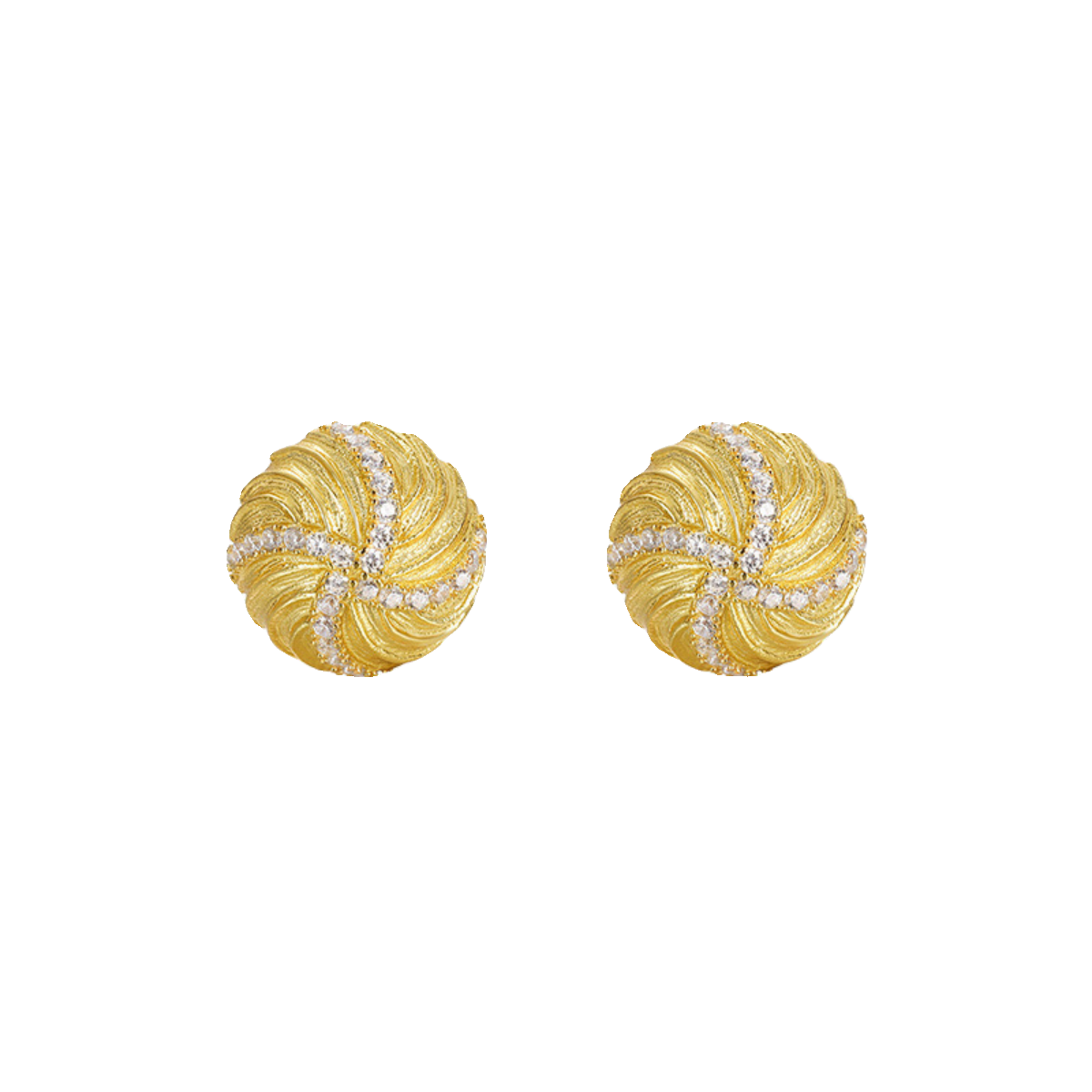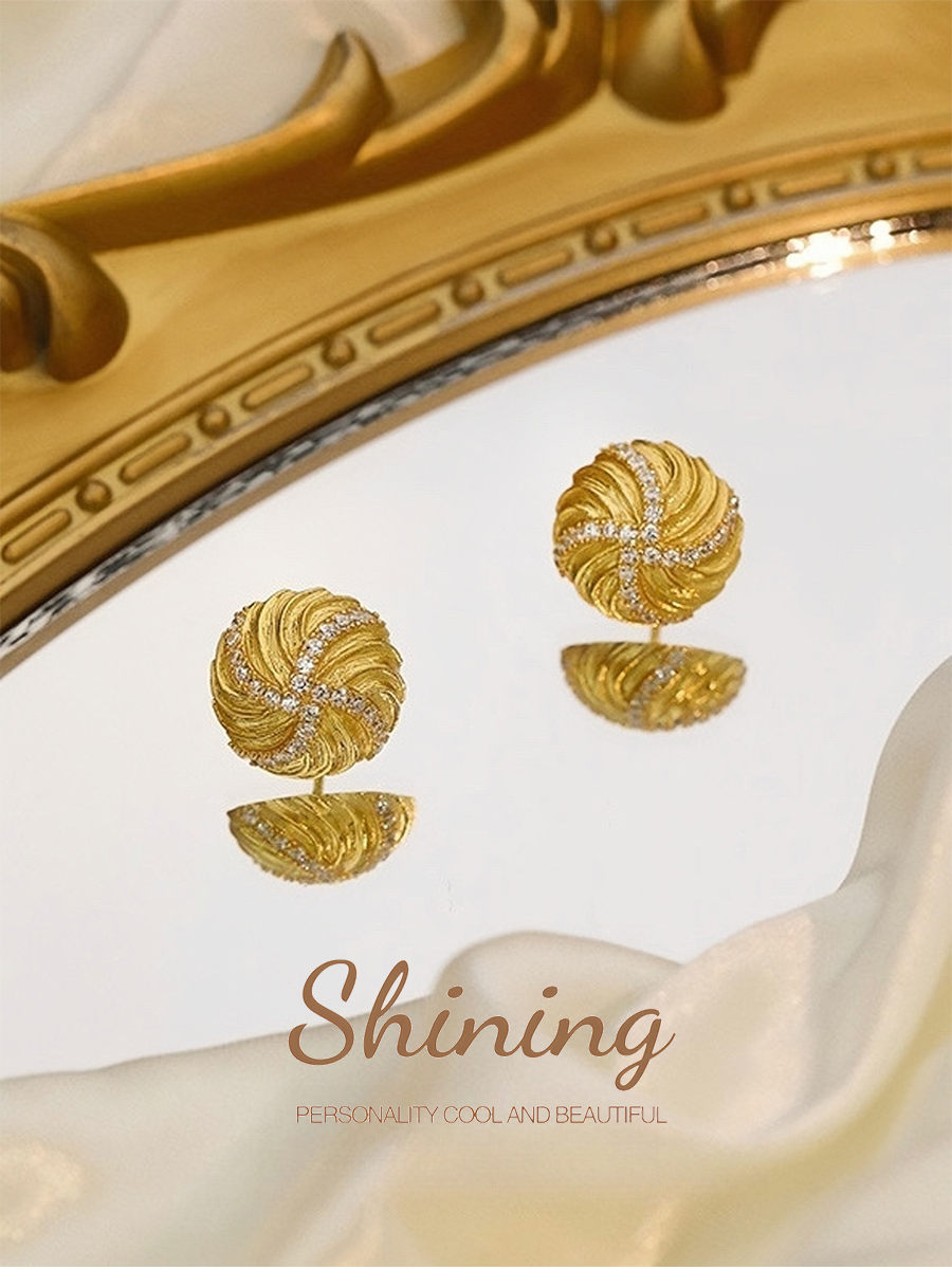 Classic Herbon Wind Italy Wire Drawing Frosted Craftsmanship Ear Nail Retro Handmade Mysteries Ultra Shiny Zircon Earrings-Taobao