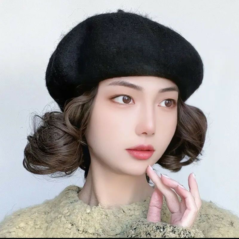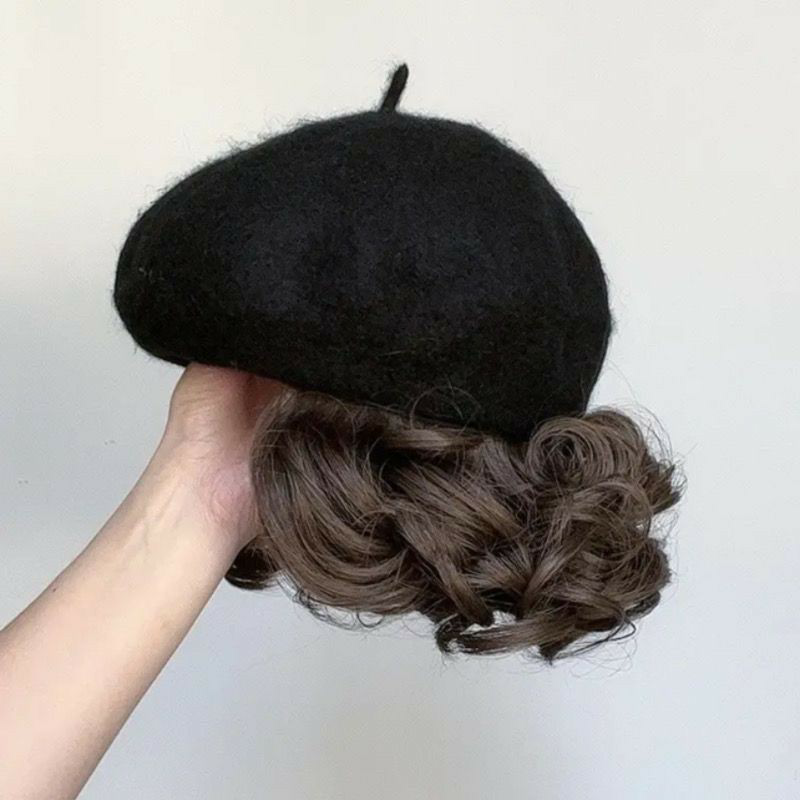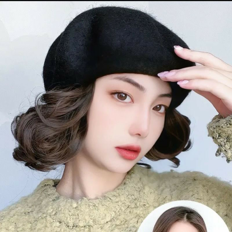 Fashion hat Wig Berets Hood Female One New Emulation Short Roll Autumn Winter Hair Natural Hat Herben Wind 100 Hitch-Taobao