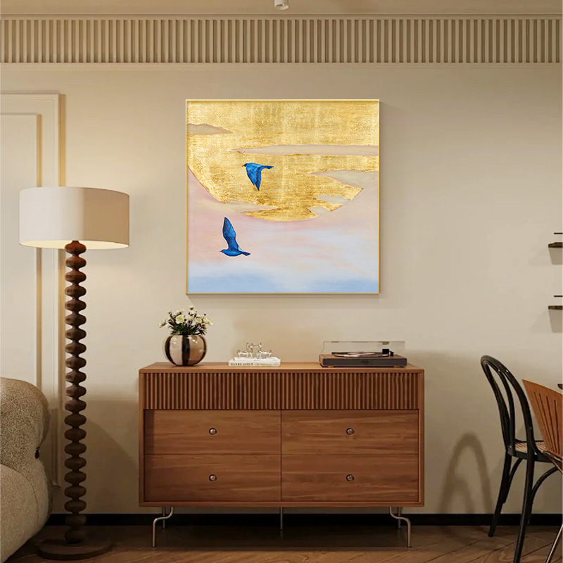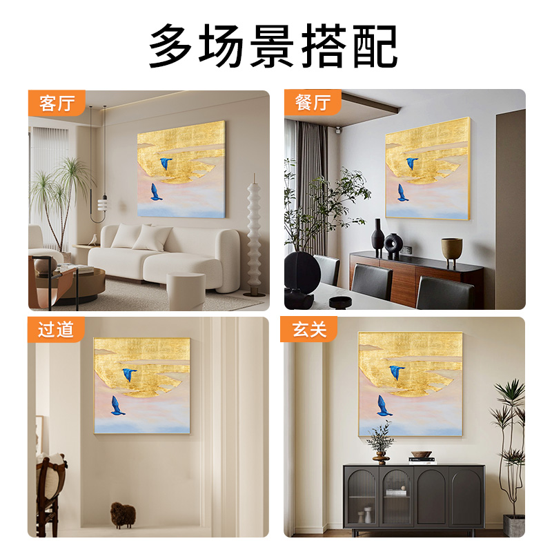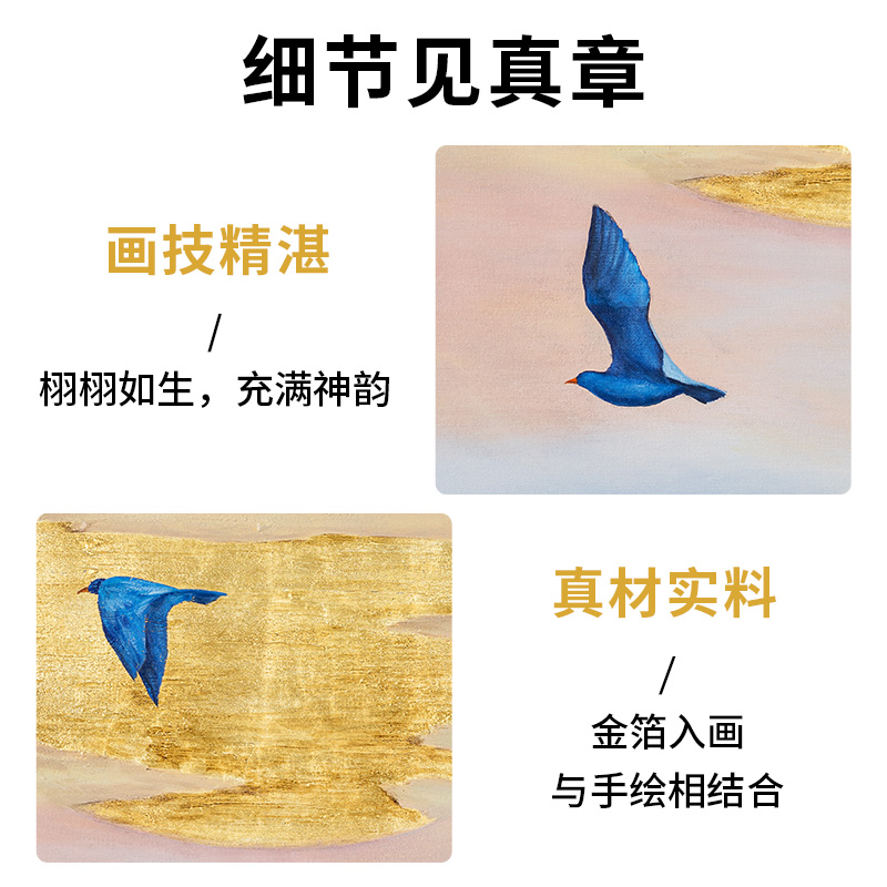 Middle and ancient wind light and luxurious birds hand-painted gold leaf oil painting Advanced sensation Dafen village living room Wall Painting Corridor Aisle Wall Hanging Painting-Taobao