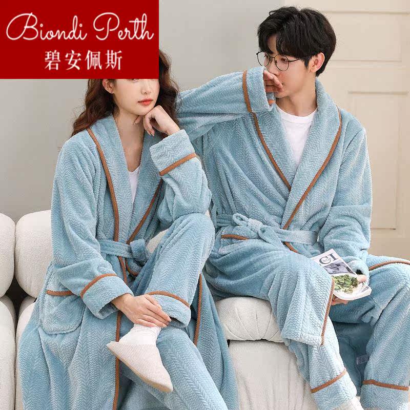 Men's winter sleeping robes thicken women's autumn winter white flannel velvet gush couple pyjamas with coral suede bath 1224b-Taobao