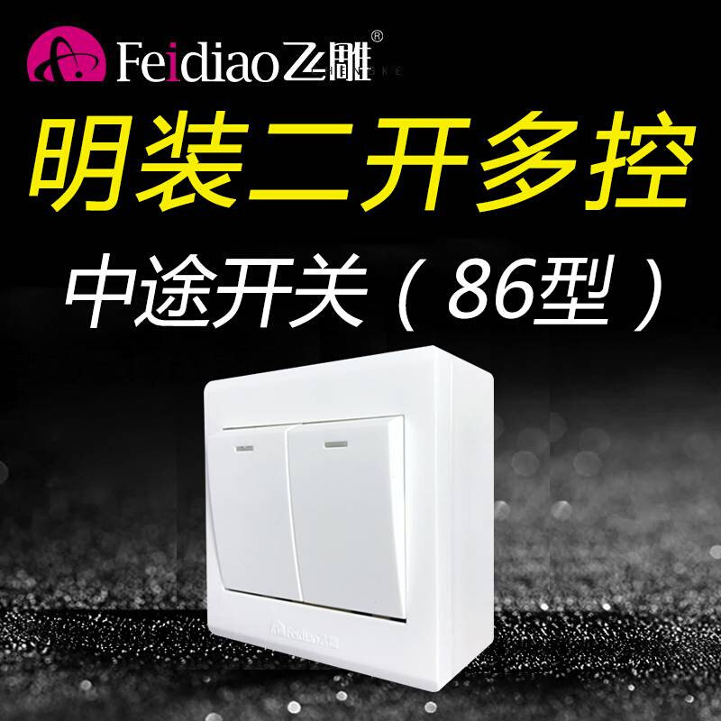 Type 86 Ming fit two open multi-control midway switch 2 bits two open multi-control triple control double open 2 open panel double joint * -Taobao