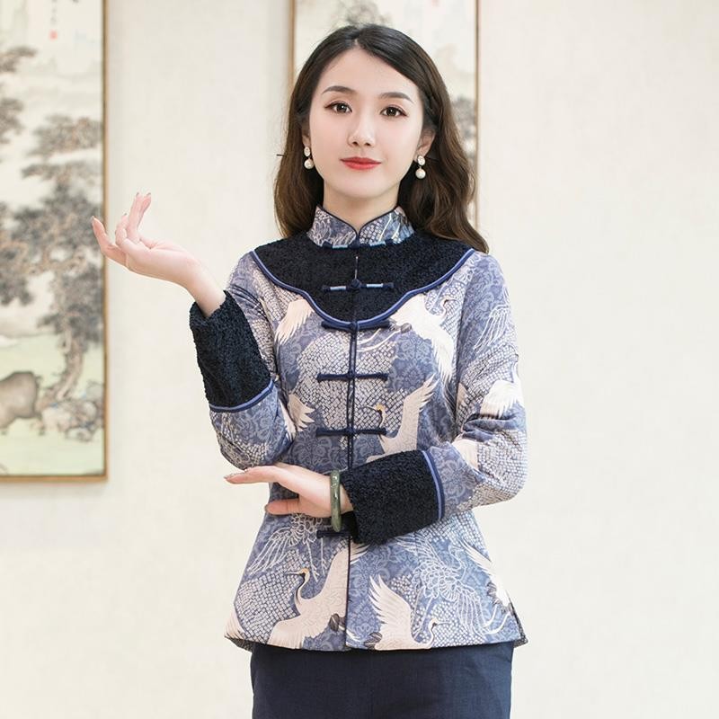 Tang Dress Women's Clothing Wind Autumn Winter Qipao Style Blouse Chinese Pan Button Long Sleeves Thickened Cotton Padded Jacket Cotton Clothes-Taobao