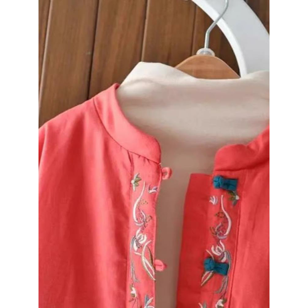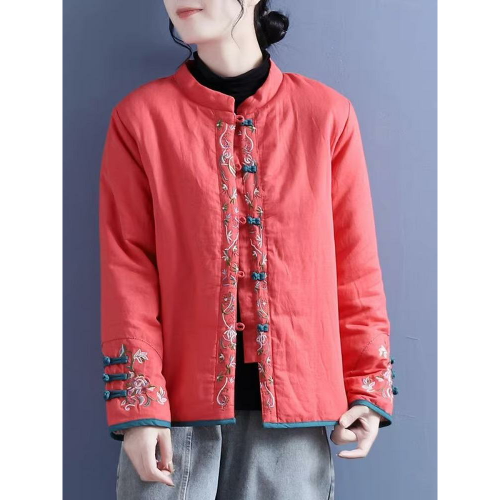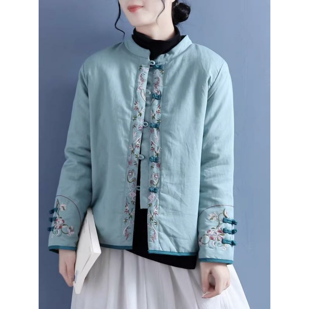 Wind art retro disc buckle embroidered cotton clothes woman autumn winter cotton linen jacket Chinese clip cotton open-shirt tea cotton padded jacket comfortable-Taobao