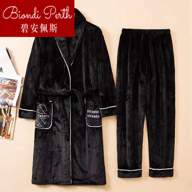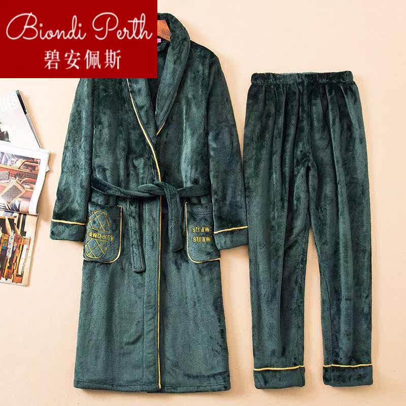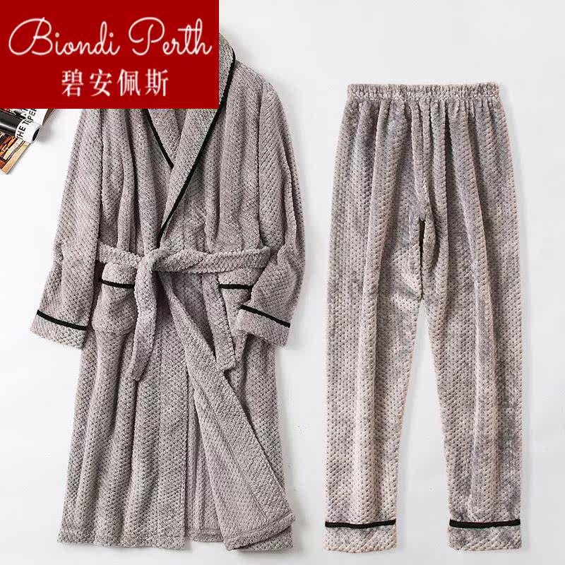Men's winter sleeping robes thickened autumn and winter flannel warm sleeping clothes autumn and winter style large code coral suede bath 1224b-Taobao