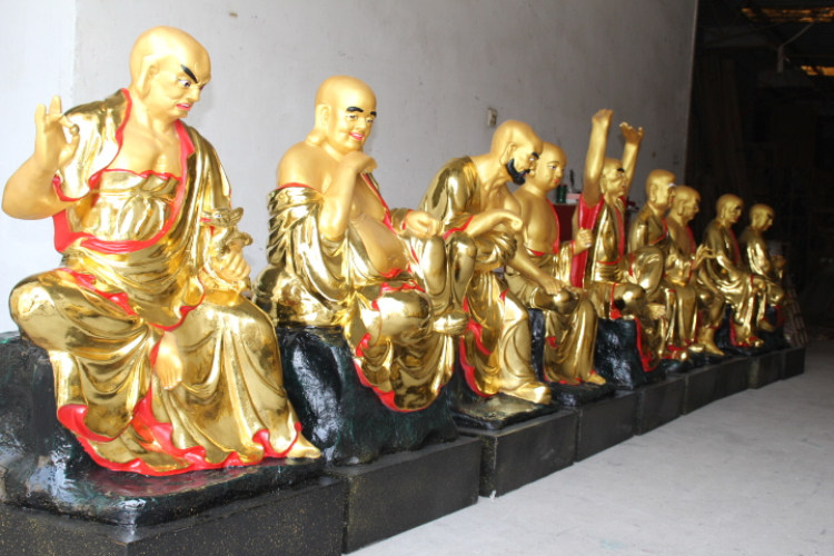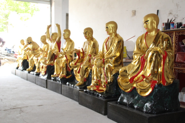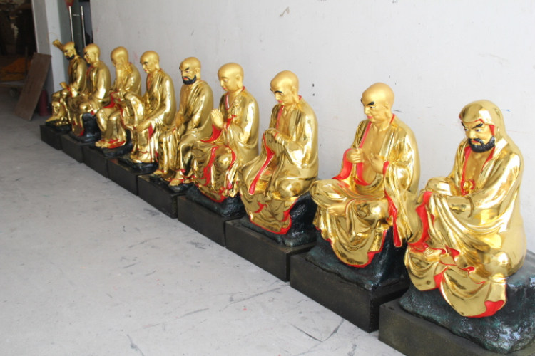 Temple resin Buddha statue glass GRP with gold color painted 1 m 1 m Rohan sitting Rohan temple in Rohan-Taobao