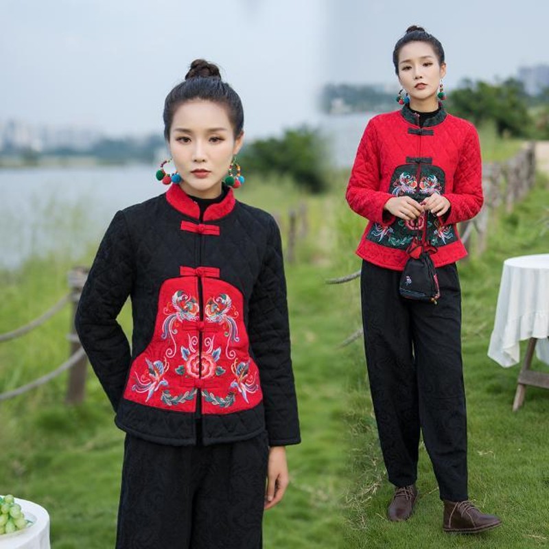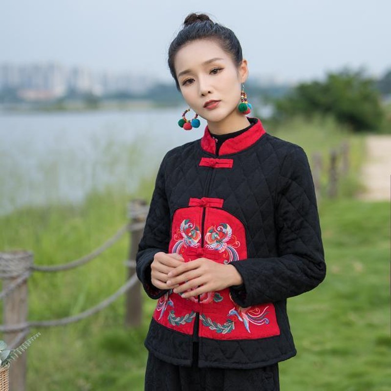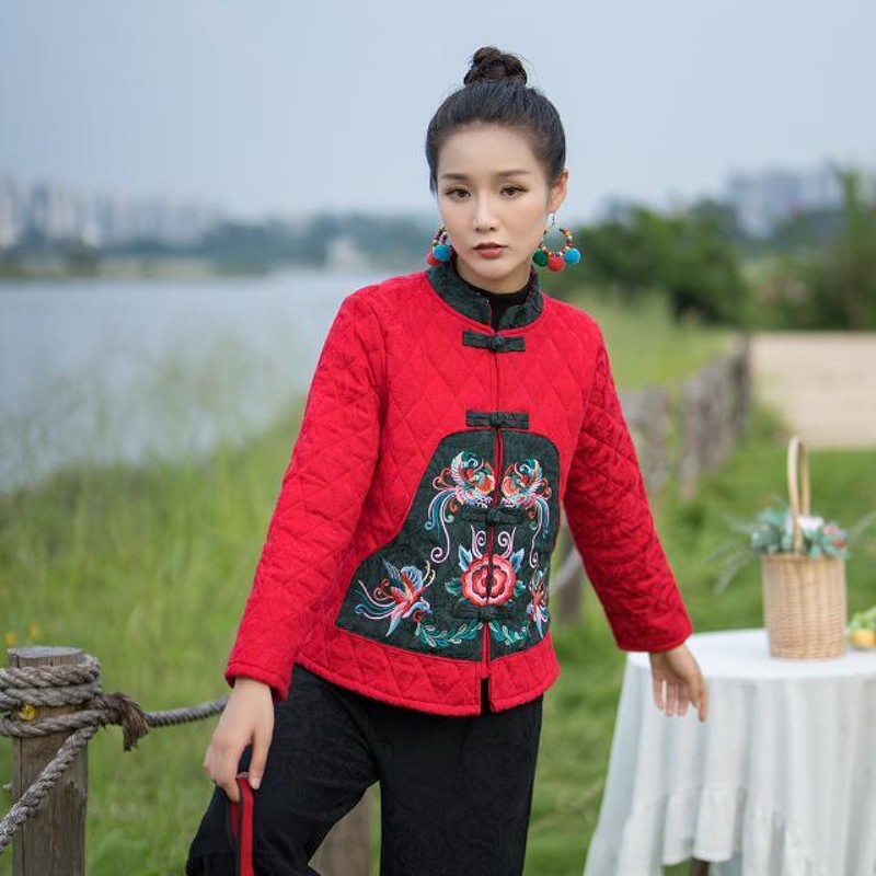 2023 years winter ethnic wind embroidered cotton clothes jacket women's disc buckle upright collar jacquard embroidery short cotton clothes blouses-Taobao