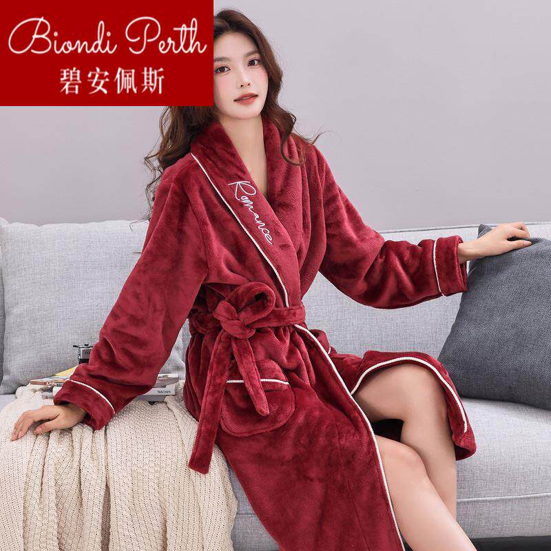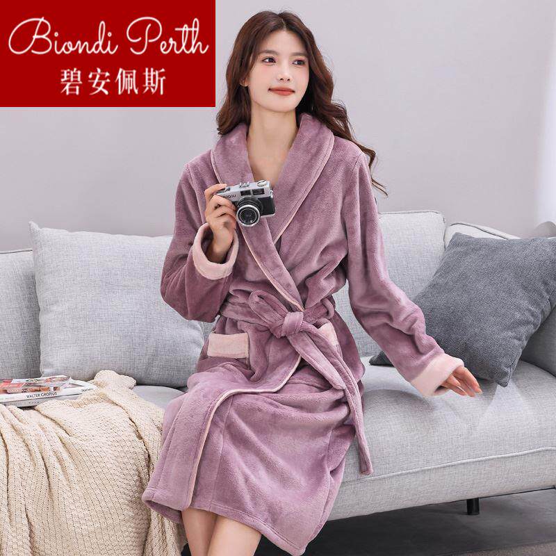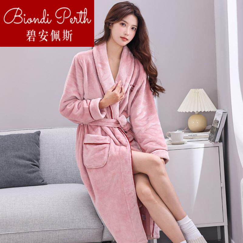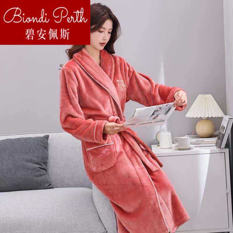 Men's winter sleeping robes thicken women's autumn winter plus suede coral suede flannel pyjamas sleeping bathrobe women's length 1224b-Taobao